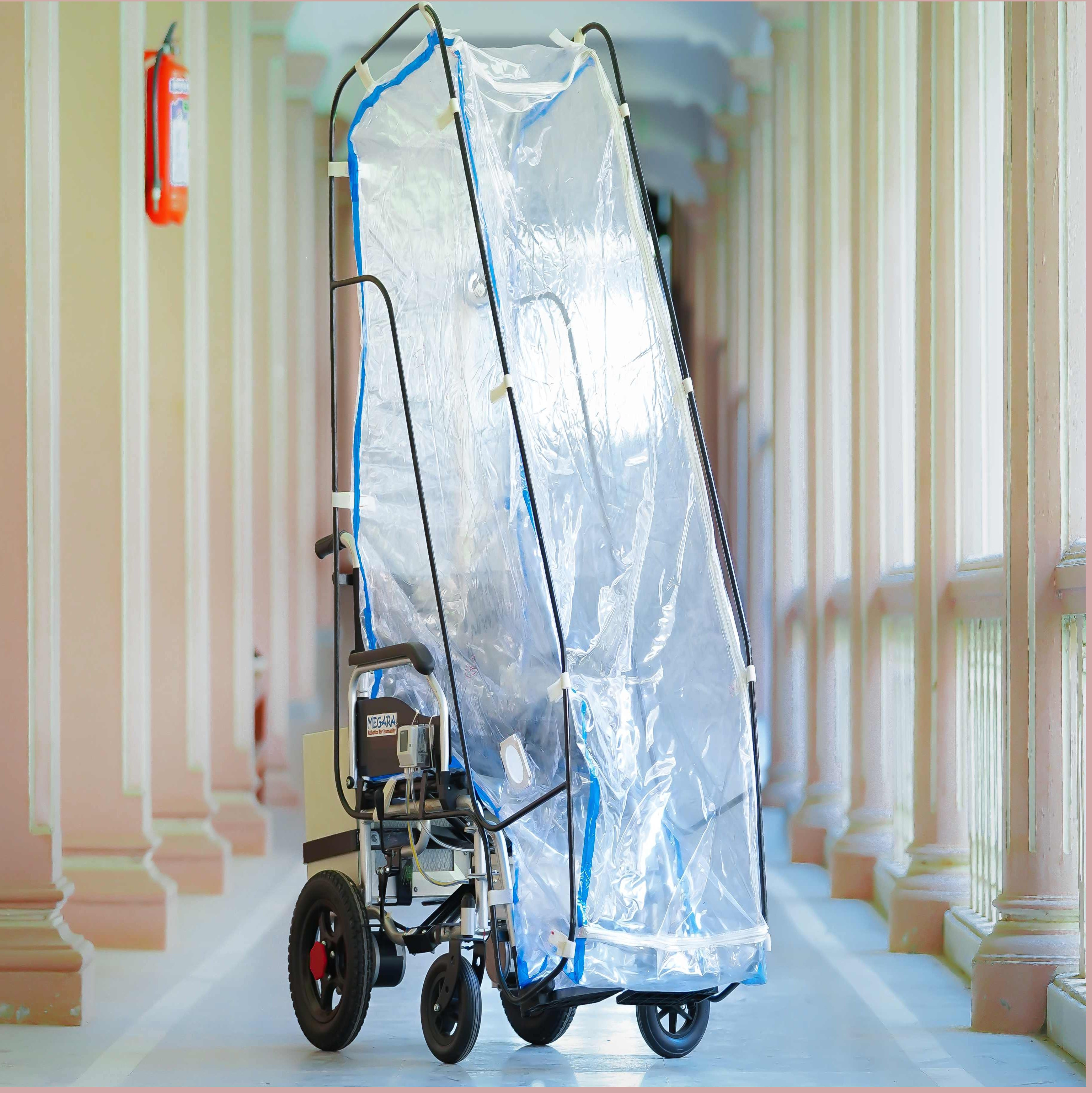 It was organized by UK RAS Network, UK Robotics and Autonomous Systems (RAS) Network based in United Kingdom. The project was designed to transport COVID patients safely and to avoid spreading of virus in the environment. The project was funded by IEEE HAC & SIGHT. COVID patients can be seated on the wheelchair covered by the negative pressure isolation hood and the operator/caretaker can use the teleoperation control method and operate the wheelchair from a safe distance of up to 4 meters without the need to touch the wheelchair. The negative pressure isolation hood using a HEPA filter was developed and integrated into this powered wheelchair. The negative pressure isolation not only prevents the spread of pathogenic microorganisms but also permits rapid and flexible isolation transport. The air discharged from ventilation is through HEPA filters and is purified to ensure no harmful pathogens are spreading out.