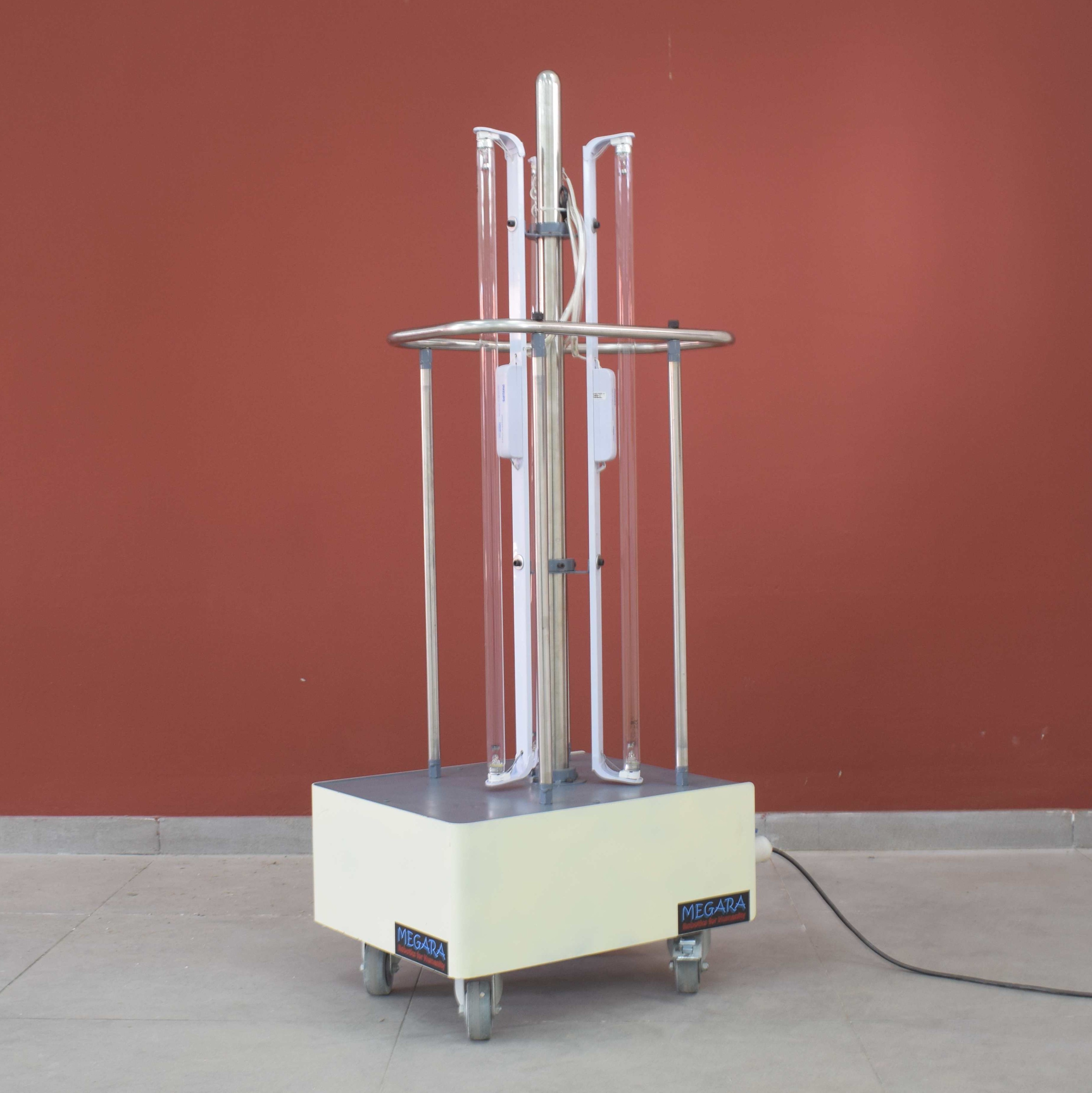 Fitted with a siren for safety when operated, the mobile robot uses Bluetooth for remote control. The UV lamps can be switched on/off remotely. With 3 UV lamps of 55 W each, Prabha can disinfect a room of 12 x 12 sq feet in less than an hour. It also has provision for using 6 lamps and can disinfect the same room in less than 30 minutes. It can be used to disinfect rooms where patients of communicable diseases were present; can be used to disinfect restrooms; medical equipment etc.